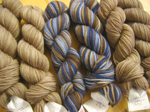 There's going to be a noticeable slowdown in my knitting here over the next few weeks, because I'll be working on a few designs of my own in the background. All hush, hush and no peeking, of course. But here are a few of the yarns I'm considering. Got any feedback on these for me?