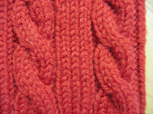 I can't show you the project I'm designing right now, but look, the yarn turned my Bryspuns red!