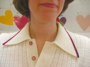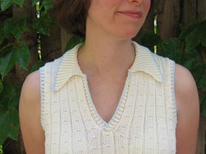 Nancy wants to do the cutting herself. It's a special moment between a knitter and her knit. I wasn't about to take that moment away from her, so I handed back the vest just like that.