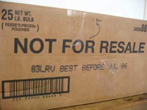 Do you see it at the top left? It's a Reeses Pieces box! I'm thinking that either means that they're buying old boxes from somewhere or the folks who work at Plymouth Yarn stay well supplied with delicious treats. Luckies!