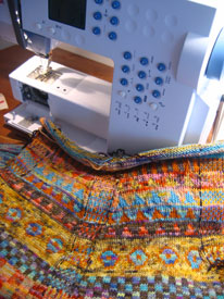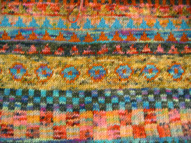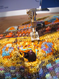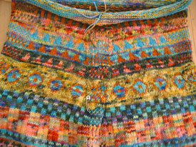 Like this Koigu vest knit by fellow Knitsmith, Nancy. Nancy is an artist, doesn't follow patterns, and makes the most incredible knits. But she doesn't have a sewing machine. So, it was my job to sew in the steeks on her vest.