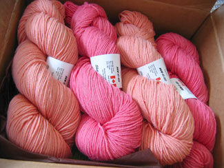 Five designs-worth of yarn is sitting in boxes in the office waiting for me. I've received so much yarn recently that the mailman now has a special honk he uses to call me to the door! It's exciting, it's overwhelming, it's horrifying all at the same time.