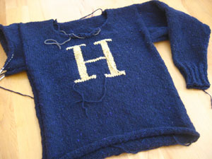 I'm fiddling around with the gauge of my original pattern and am treating myself to some fabulous Jo Sharp Silkroad Aran Tweed (in the perfect blue - just like the sweater Harry gets in the movie!). I'm really enjoying knitting this one so far. The pattern is so familiar to me now that knitting it is like visiting with an old friend again.