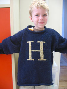 And I LOVE the blue. I cannot say enough good things about this Jo Sharp Silkroad Aran Tweed: fabulous to knit with, comfortable to wear, amazing colors.... And I just happen to have some in red (S's favorite color), so the boys may be wearing weasleys again sooner than I thought. Say it with me, "aaanooother weasley?!"