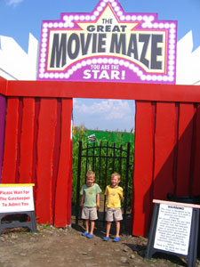 This year's theme was movies and the maze had a big star in the middle of it, along with all sorts of fun areas to find where you can do cool movie stuff like shoot tennis balls at villians, slide through a black hole, and play with funny mirrors. There are always 10 bridges in the maze and this year each was dedicated to a different movie or type of movie. There was "Chick Flick bridge" with a big Fabio cutout, a Blazing Saddles covered wagon bridge, a Pirates of the Carribean bridge with a giant mast and sail, and my favorite, the Harry Potter bridge.