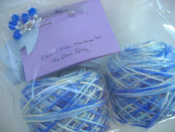 But best of all, waiting for me at the store, was this yarn and these truly beautiful stitchmarkers from Amy C. Amy recognized me and the boys (I think most people actually recognize the boys first) at my local Finagle-a-Bagel and remembered that I had posted about searching the Boston-area yarn stores for more yarn to fix B's blankie. Well, she just happened to have two balls of it that she couldn't really find the perfect project for. She wrote me a sweet email saying that she'd like to donate it to the keeping-the-blankie-alive cause. Isn't that wonderful?! Thank you, thank you, thank you, Amy!