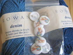 Shireen is to blame. I am totally hooked on Rowan denim! My second denim baby knit (after the pinafore) will be this little Phildar baby sweater (from Phildar #381), which I'm gonna do in dark blue denim with light blue denim stripes. And I couldn't help myself when I saw the Beatrix Potter Peter Rabbit buttons. So cute!