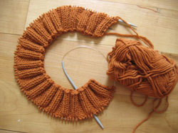 Done? Good. Cause I ripped out half of it last night. It was too short. No doubt about it; no denying it; no way out but to rip. Back to the beginning of the armhole she went. Yes, half of katy is gone. Looks like the back will be eating up a few more of my nights. It's not all bad though: more opportunity for me to knit with that delicious copper all seasons cotton, right?