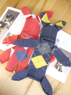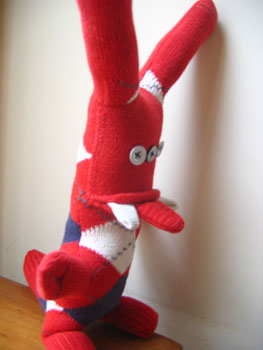 made for each of the kids with some old socks and from patterns in Stupid Sock Creatures