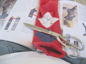 Once I had those silly socks in my hot little hands, I couldn't wait to get started on the boys' stupid sock creatures. This book is so funny - it doesn't just say to cut, but instead instructs you to hack and slash with swashbuckling strokes.