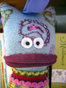 Made from a pair of Ozone knee highs that always fell down and bagged at my ankles, Prune is smaller and much sweeter than her big brothers.
