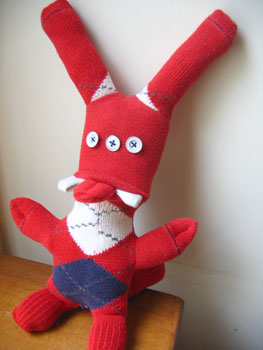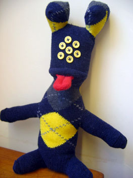 No. They just stick their tongue out at you! Yes, S's stupid sock creature is all done and has turned out looking like a silly sort of menacing rabbit.